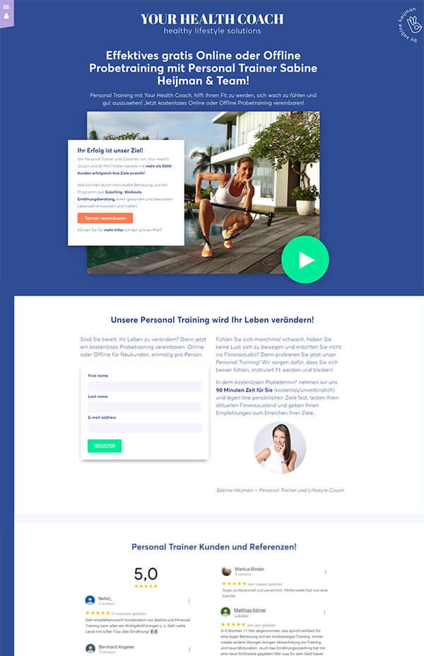 Naast het managen van de online marketing campagnes is ChristianJustin.com nauw betrokken bij de doorontwikkeling van de website, landingpages en het meetbaar maken van het websitegedrag d.m.v. Google Tagmanager (GTM) en Google Analytics implementaties (GA). Dit uiteindelijk met het doel om de bezoekers van Your Health Coach een zo goed mogelijk online beleving te laten ondervinden en het conversiepercentage te verhogen.